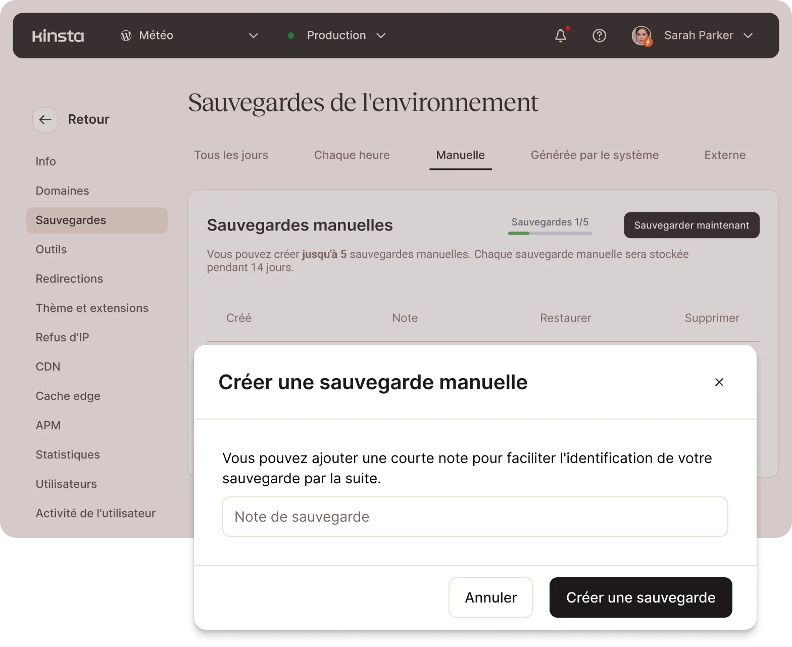 Protégez vos données grâce à plusieurs options de sauvegarde : automatique quotidienne, manuelle, générée par le système, téléchargeable, etc.