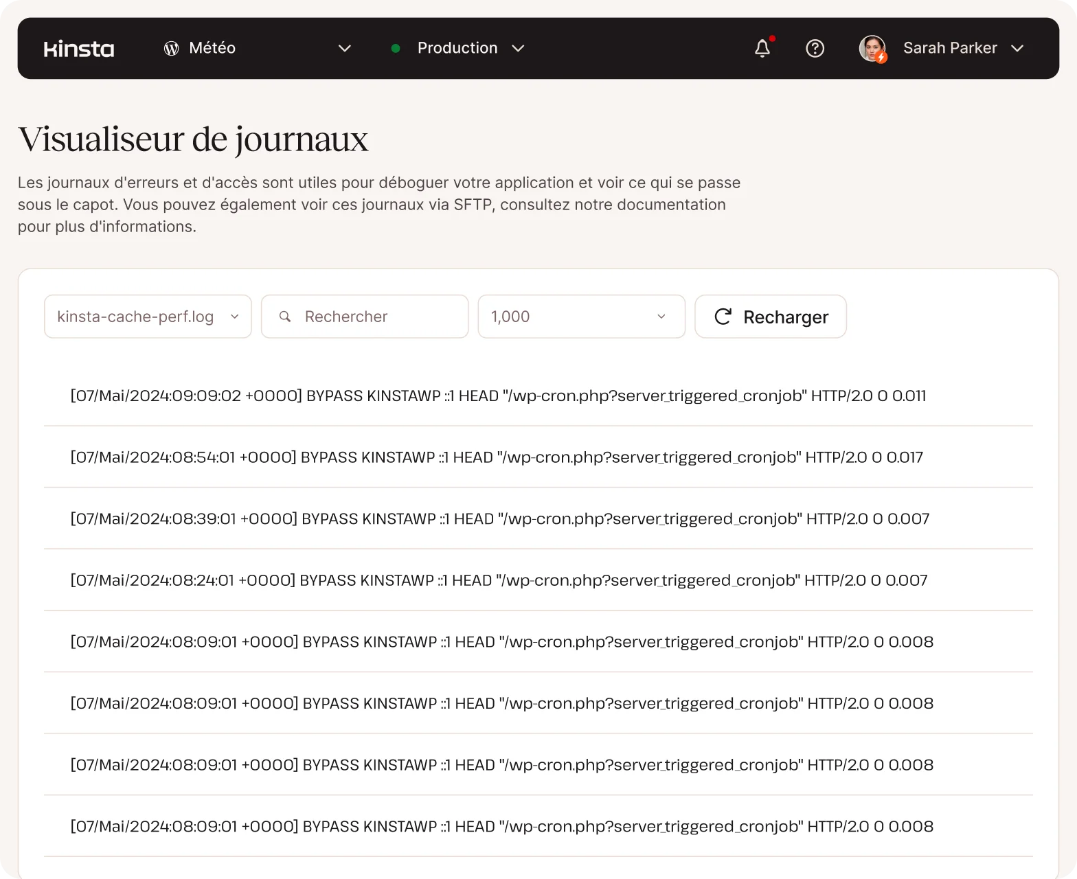 - Journaux d'erreurs, journaux de cache et journaux d'accès consultables
