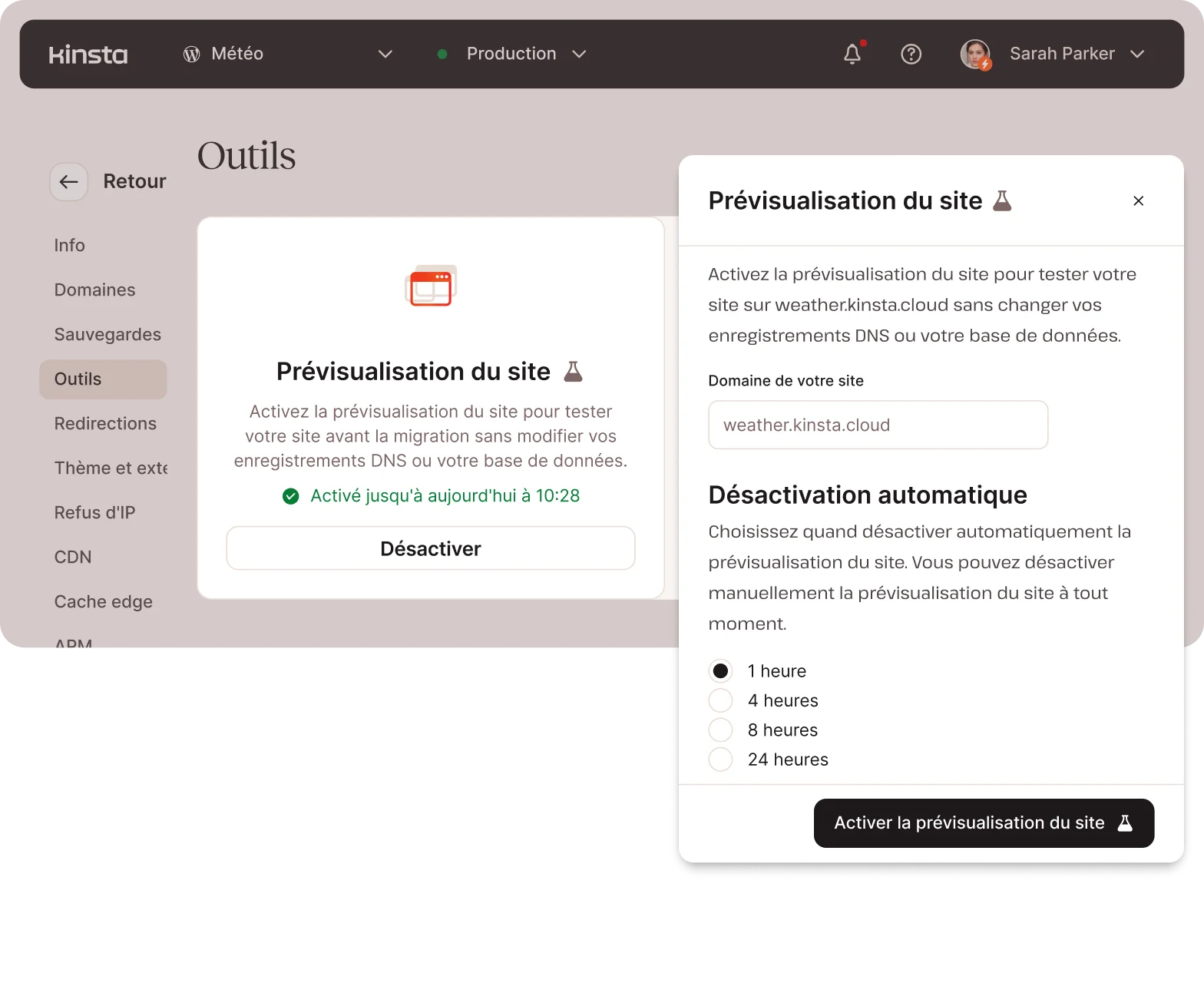- Outil de prévisualisation du site pour tester les sites sans mettre à jour le DNS