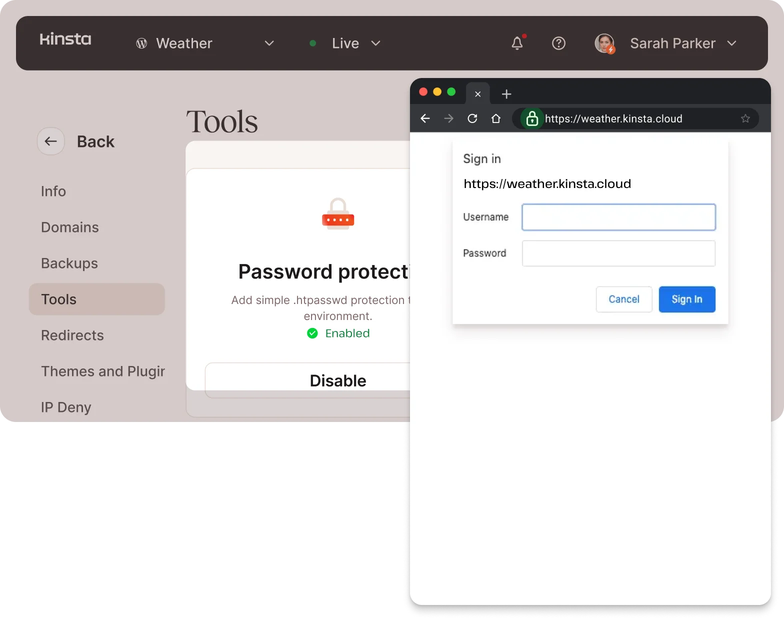 Todos os sites estão protegidos pelo firewall da Kinsta, pelo Cloudflare com proteção DDoS Enterprise e pelo firewall do Google Cloud.