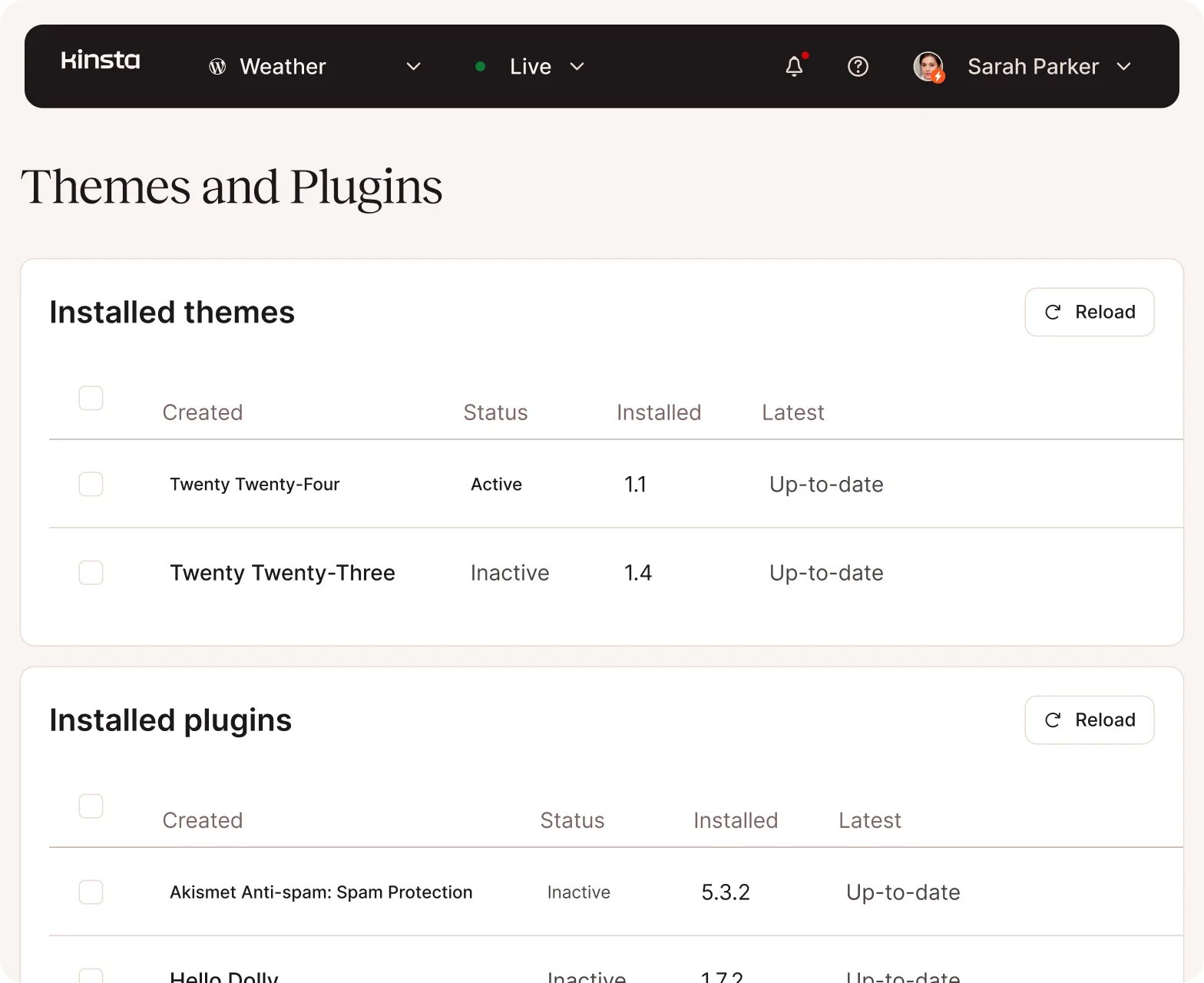 - Atualização de plugins/temas sem sair do MyKinsta