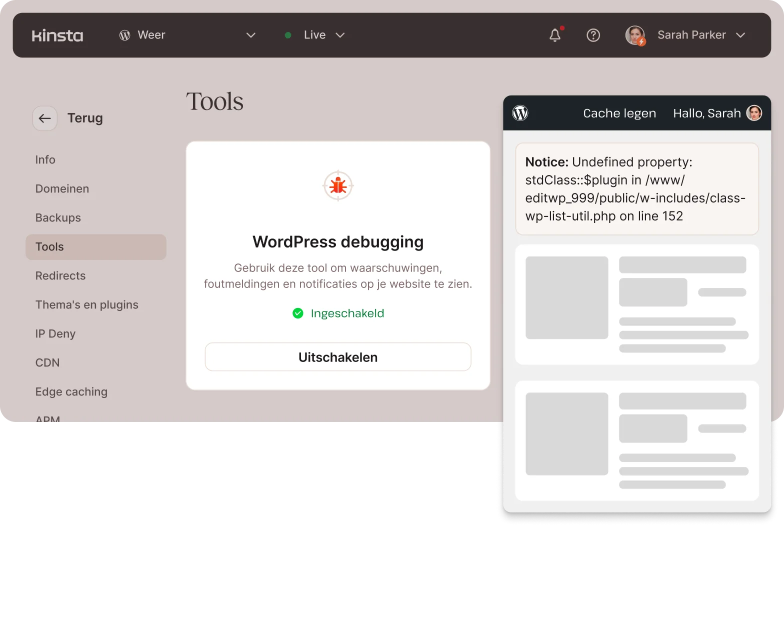 Stroomlijn het beheer van je site met alle functies en tools van MyKinsta, ons bekroonde, op maat gemaakte dashboard.