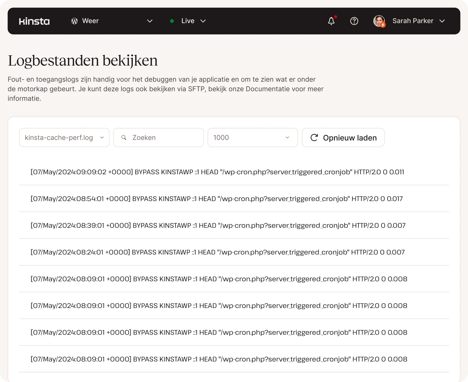 - Doorzoekbare foutlogboeken, cachelogboeken en toegangslogboeken
