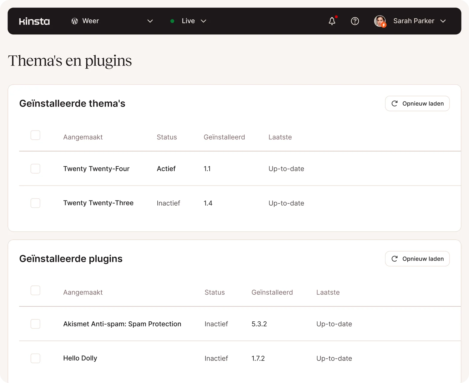 - Plugins/thema's bijwerken zonder MyKinsta te verlaten